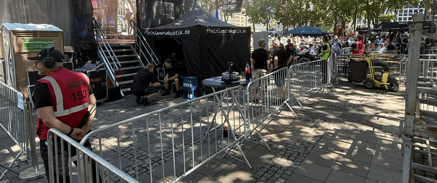 Dabei berücksichtigen wir die besonderen Anforderungen von Kommunen, Veranstaltern und Ordnungsbehörden: klare Zufahrtsregelungen, definierte Schutzzonen, abgestimmte Rettungswege und ein reibungsloser Ablauf für Lieferanten und Einsatzkräfte.